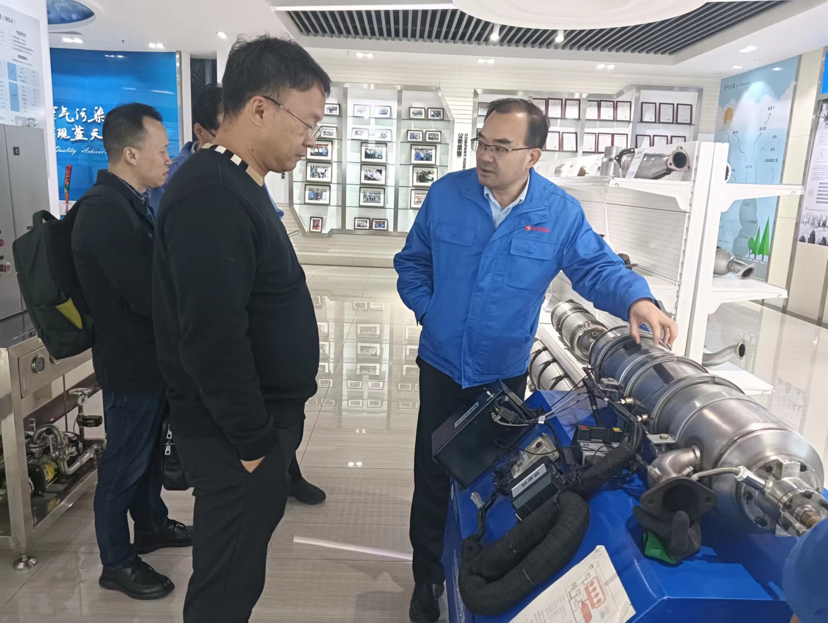 2023年11月29日,董事長(zhǎng)章守樸先生拜訪中自環(huán)??萍脊煞萦邢薰?,期間參觀了中自全自動(dòng)的生產(chǎn)車間,與中自董事長(zhǎng)陳總討論了燃?xì)獍l(fā)動(dòng)機(jī)尾氣后處理的相關(guān)問題,就后續(xù)的合作達(dá)成了